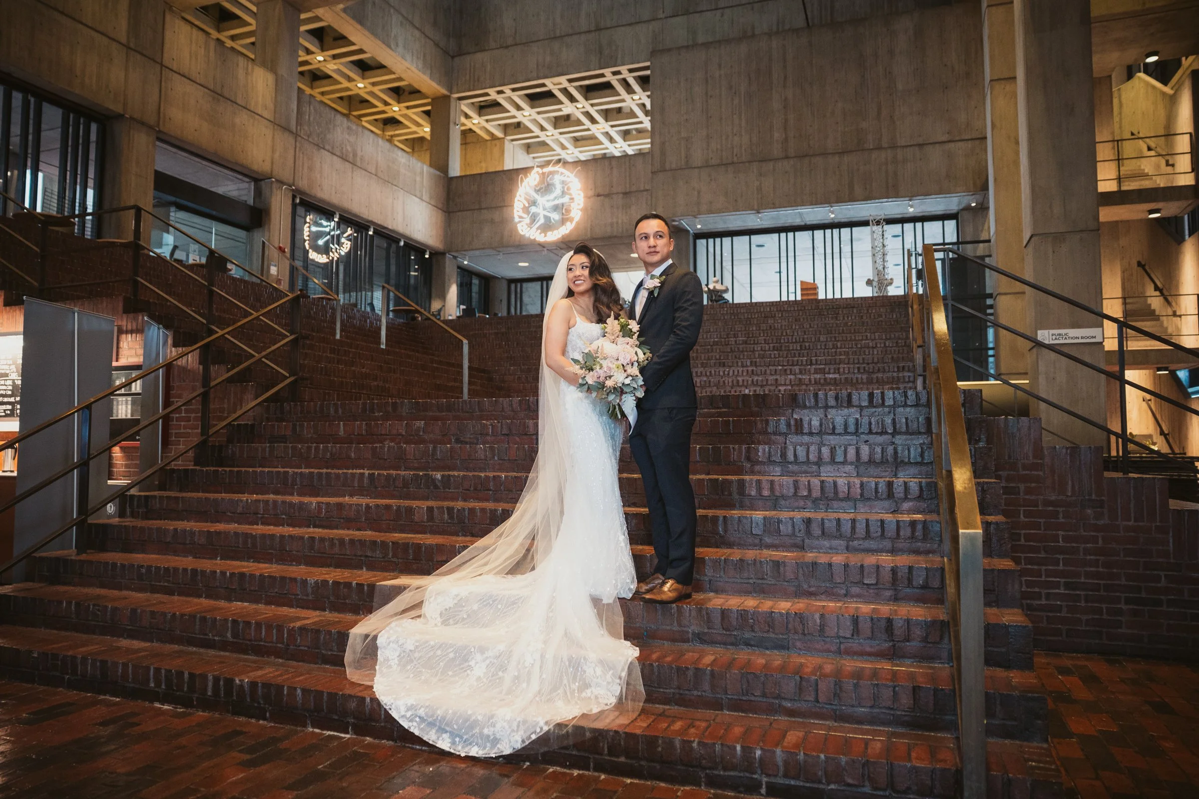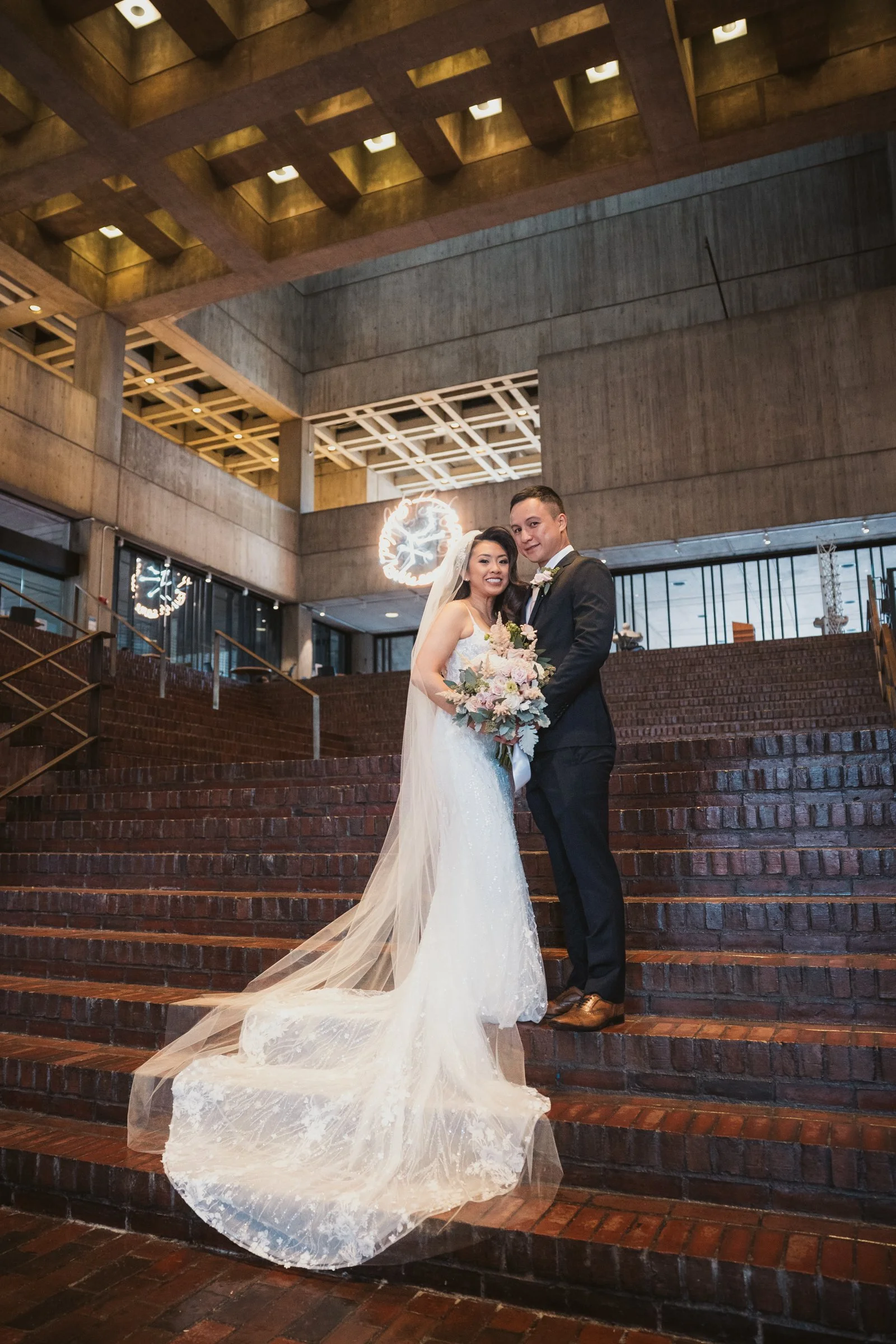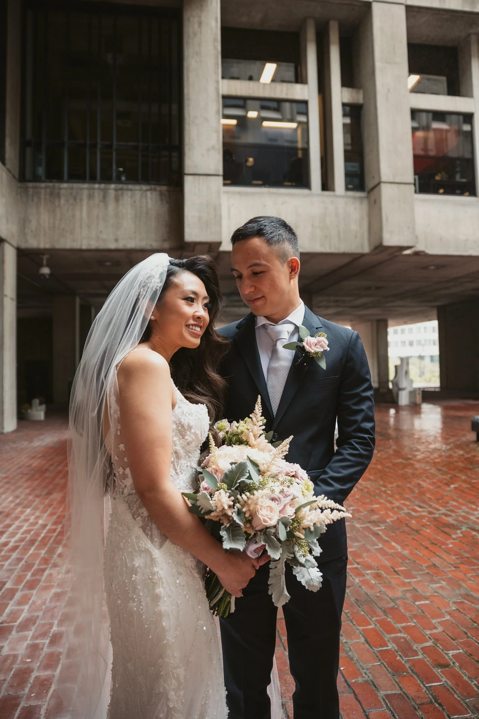 One of the things couples often do not expect about getting married at Boston City Hall is how many beautiful photo opportunities are built into the experience. The architecture has a very distinct look, with clean lines, dramatic concrete textures, and a modern editorial feel that is simple, striking, and full of character.