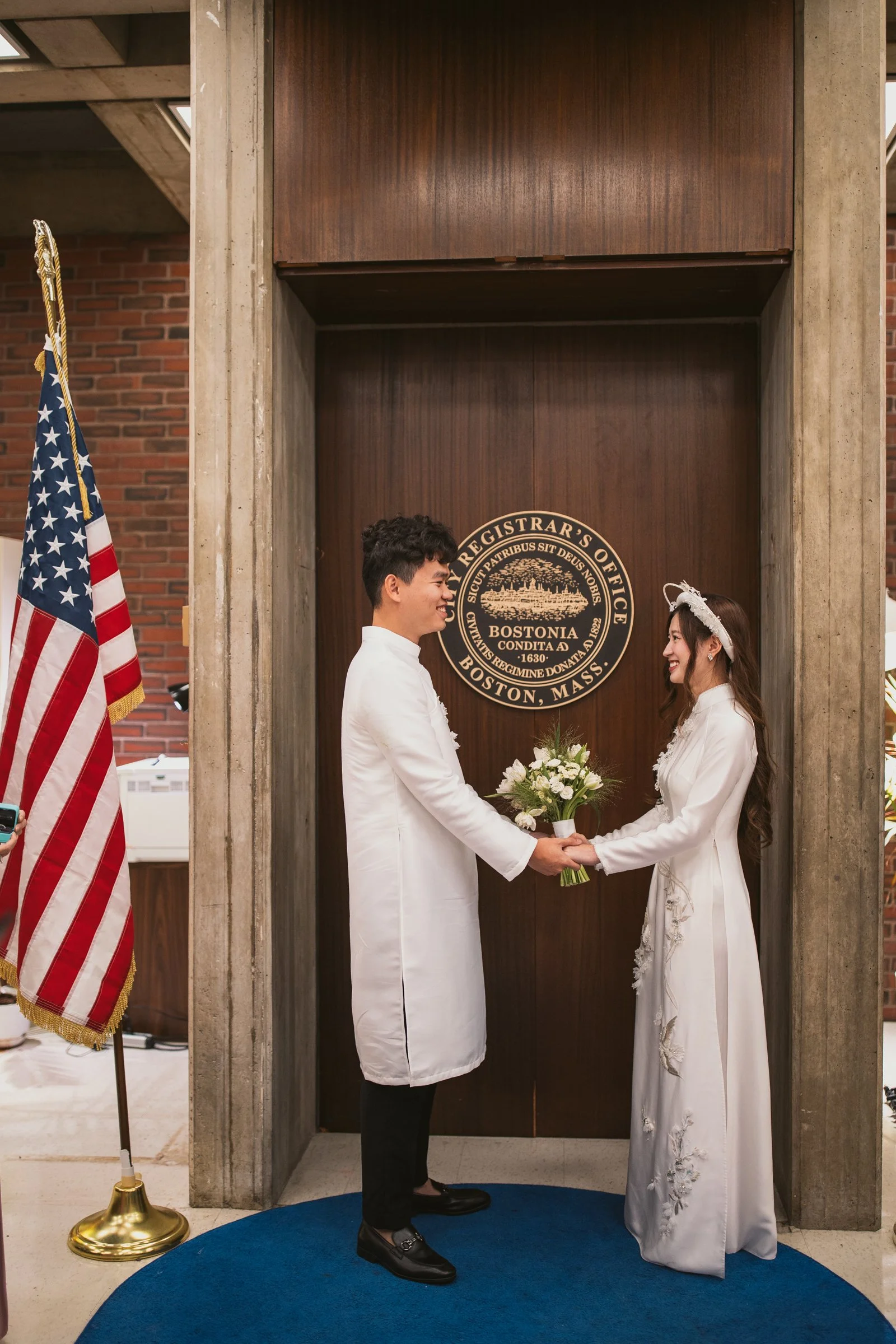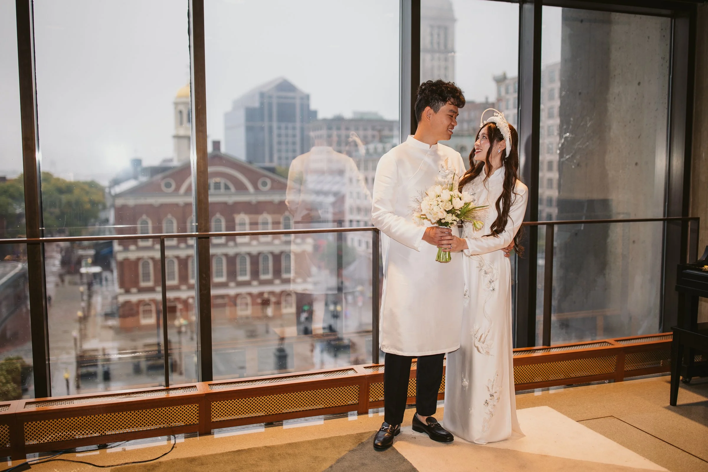 In some rare cases, a clerk may allow couples to step into the Mayor’s Office area, which offers a beautiful view overlooking Faneuil Hall. It feels like a hidden gem inside City Hall. This is not something you can schedule in advance, request ahead of time, or count on, so if it happens, think of it as a special bonus.