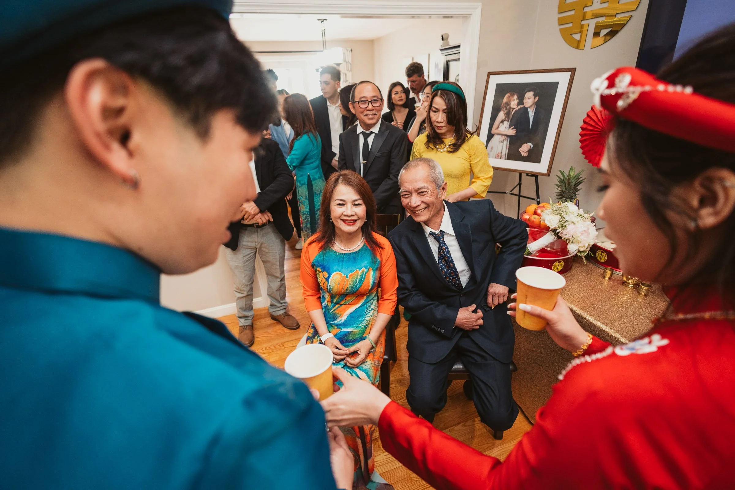 On a gorgeous summer day, I had the honor of documenting the love and customs at two distinct wedding ceremonies. The morning commenced with a traditional Vietnamese Le Ruoc Dau in an intimate setting. The vivid red and gold hues, the graceful ao dai attire, and the intricate tea ceremonies created a sensory delight.