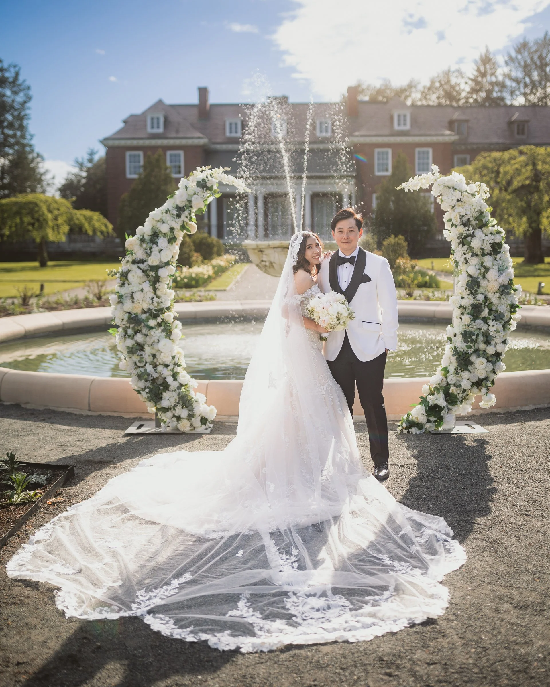 In the quiet of the Elm Bank Garden, beside the softly flowing fountain, the couple shared an emotional first look that felt completely their own. As they saw each other for the first time, the world seemed to pause. Gentle laughter gave way to happy tears, and the lush greenery of Elm Bank framed the moment with a sense of calm and intimacy. The sound of the water, the warm light, and the raw emotion between them created a beautifully private exchange, setting the tone for the heartfelt celebrations that followed.
