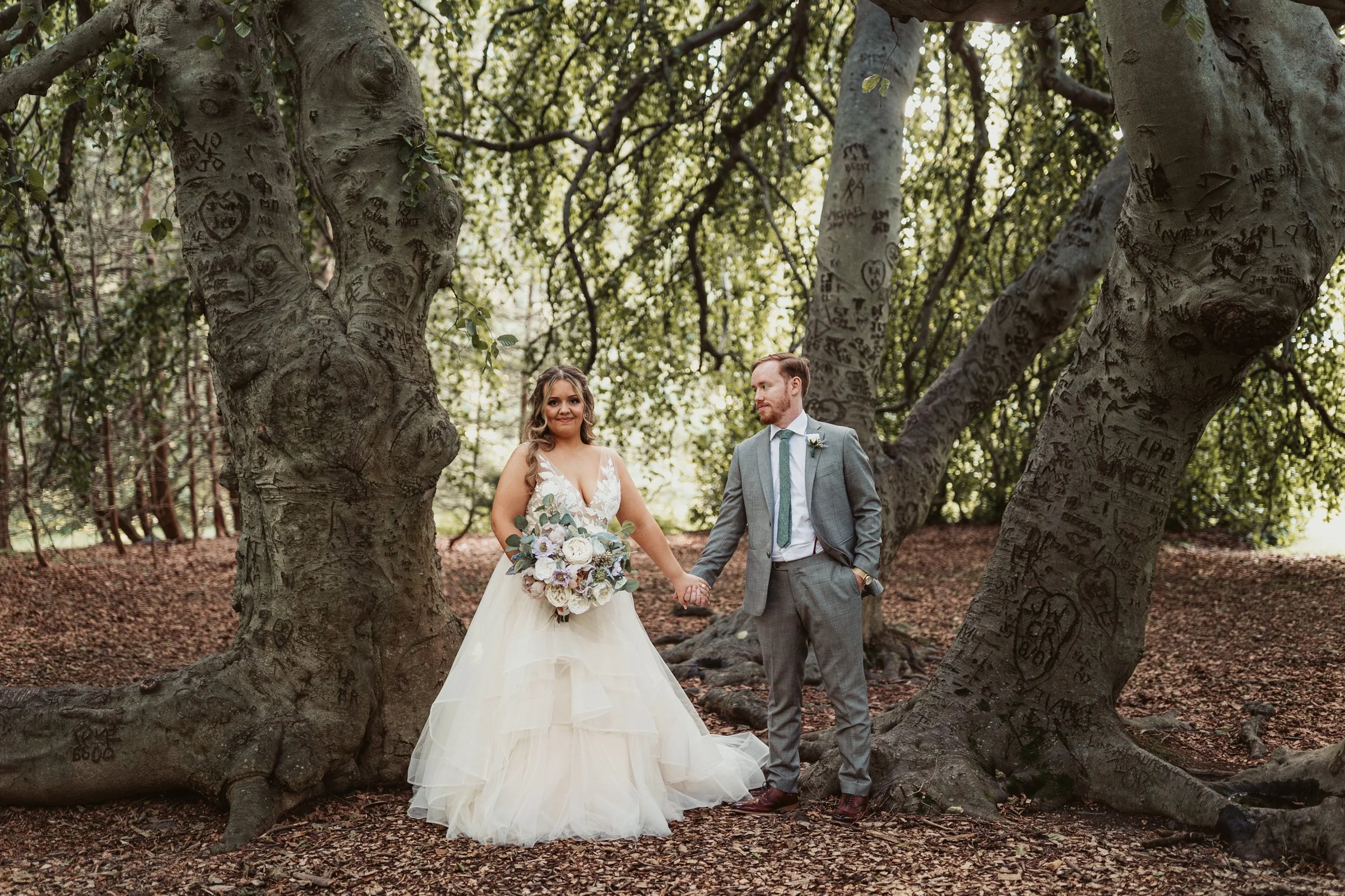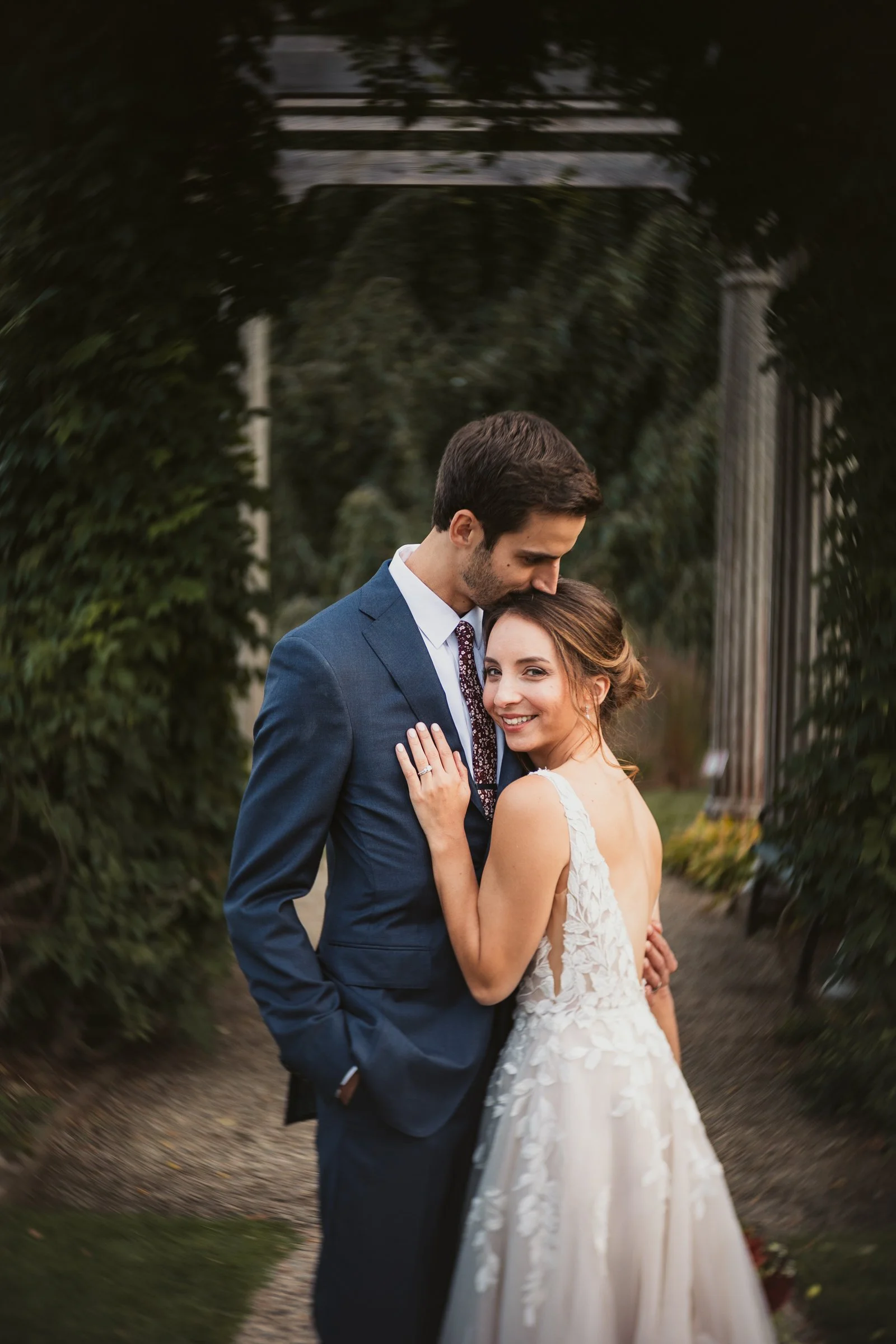 The formal garden is one of the most iconic areas for portraits. The stone columns and pergola add structure, while the surrounding greenery softens everything for a romantic, timeless look. This is perfect for classic couple portraits right after the ceremony or during golden hour.
