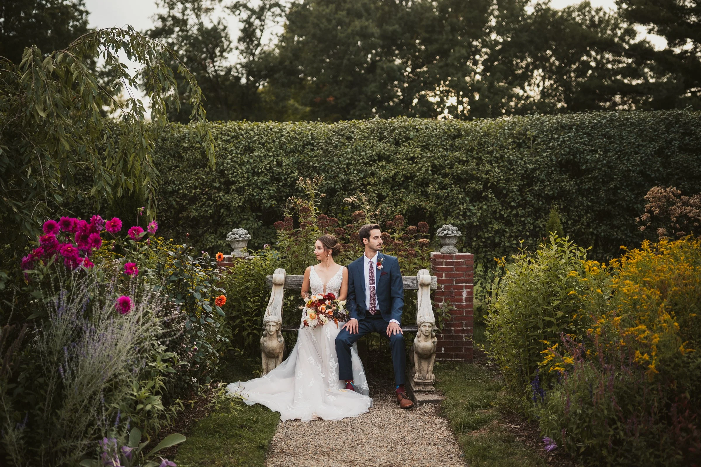 The gardens at Glen Magna Farms are truly the heart of the venue. Designed with winding paths, vibrant seasonal blooms, and intimate pockets of greenery, the space naturally creates a ceremony setting that feels personal and serene.