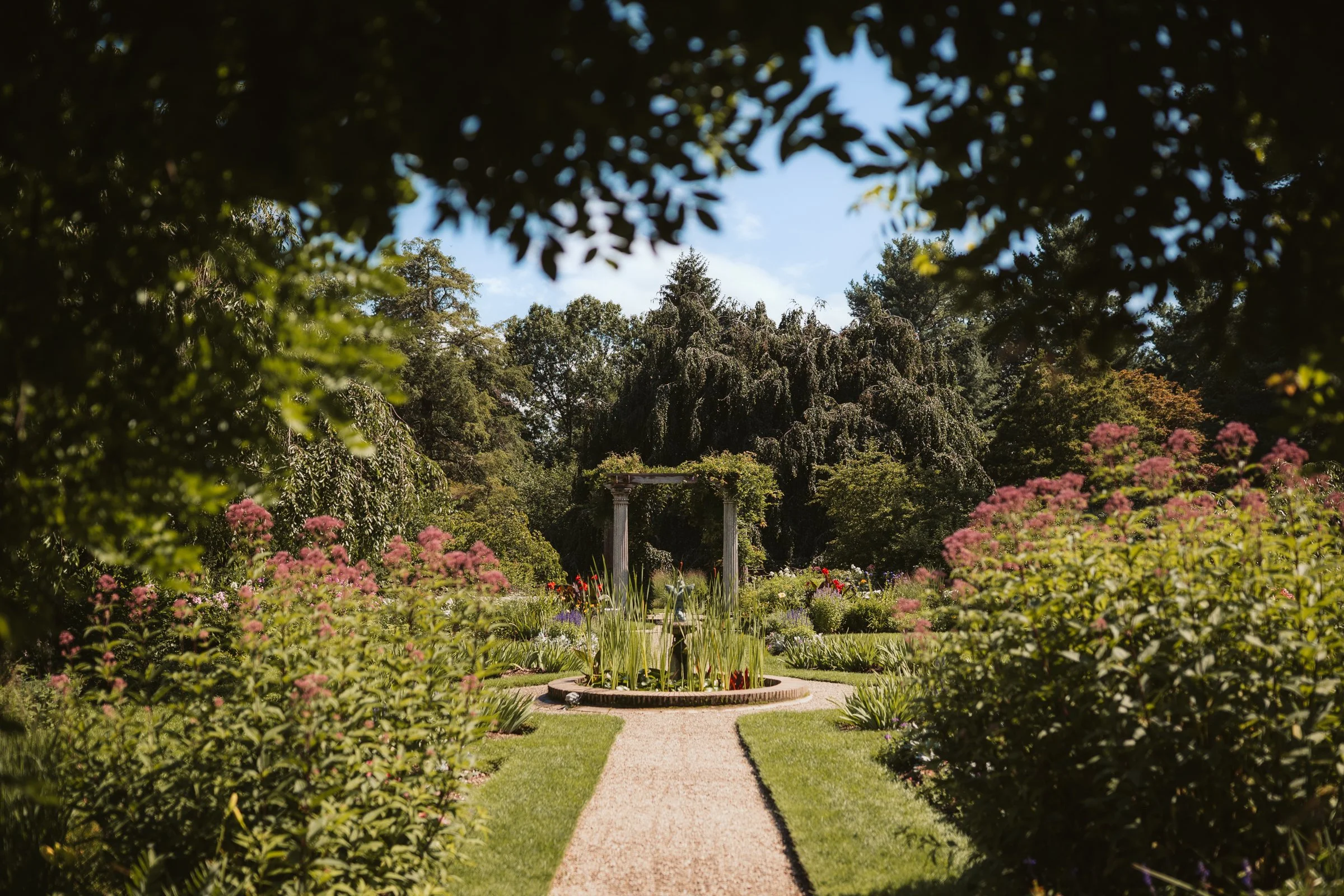 Whether you’re exchanging vows beneath the iconic pergola or surrounded by layered garden beds in full bloom, the atmosphere feels almost cinematic. The way the light filters through the trees, combined with the textures of flowers and historic stonework, creates a backdrop that doesn’t need much enhancement. It’s already complete.