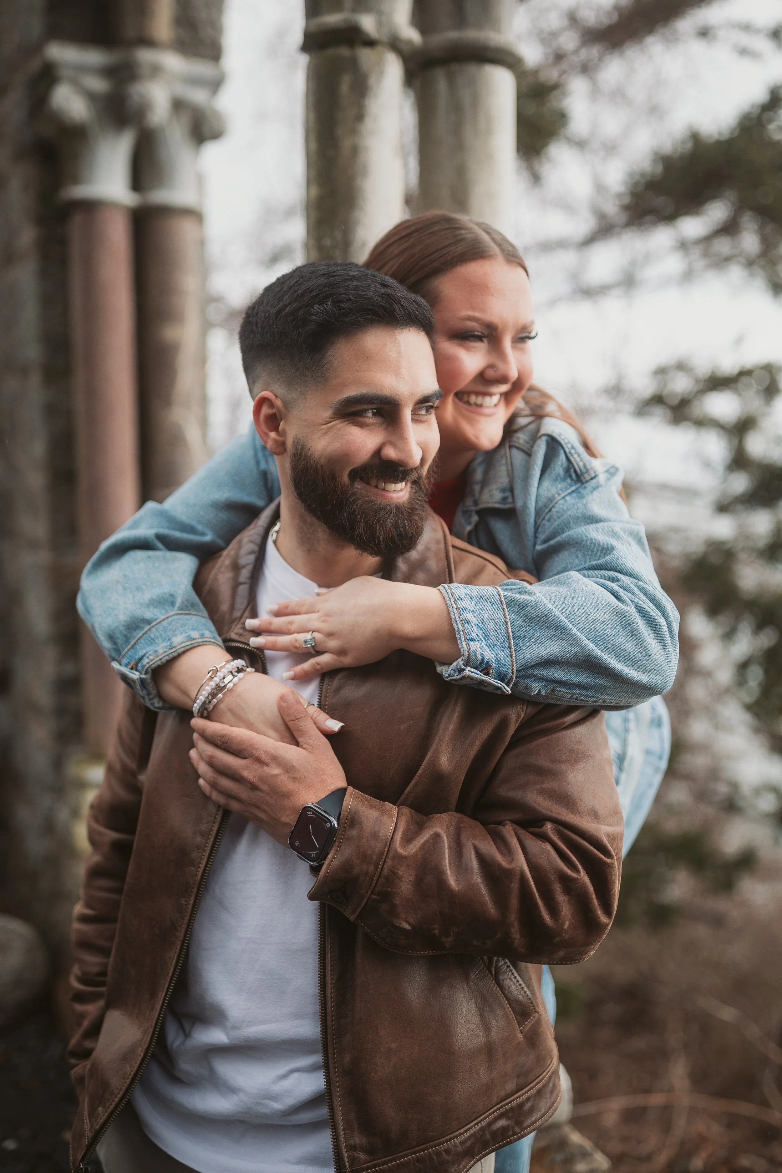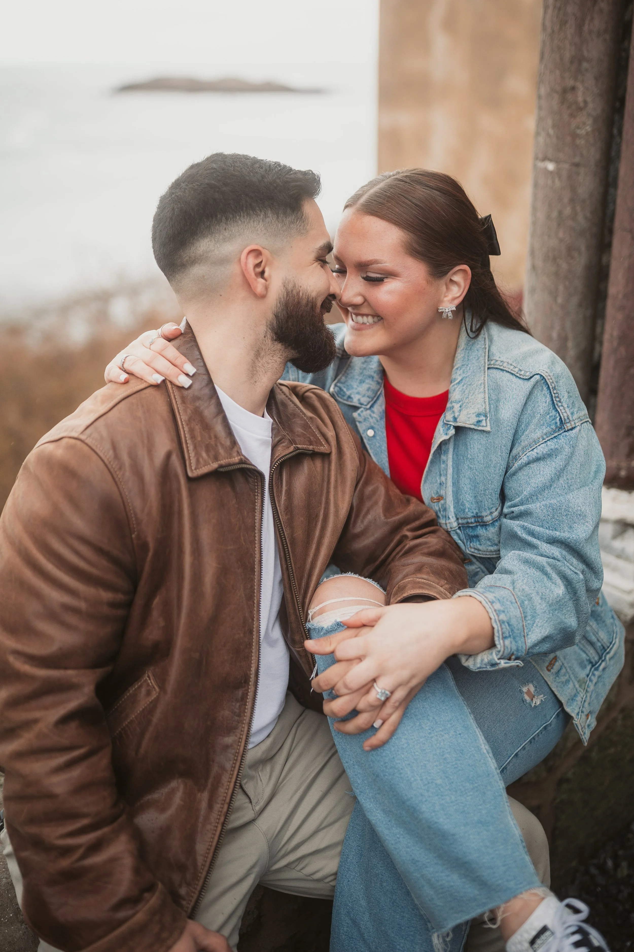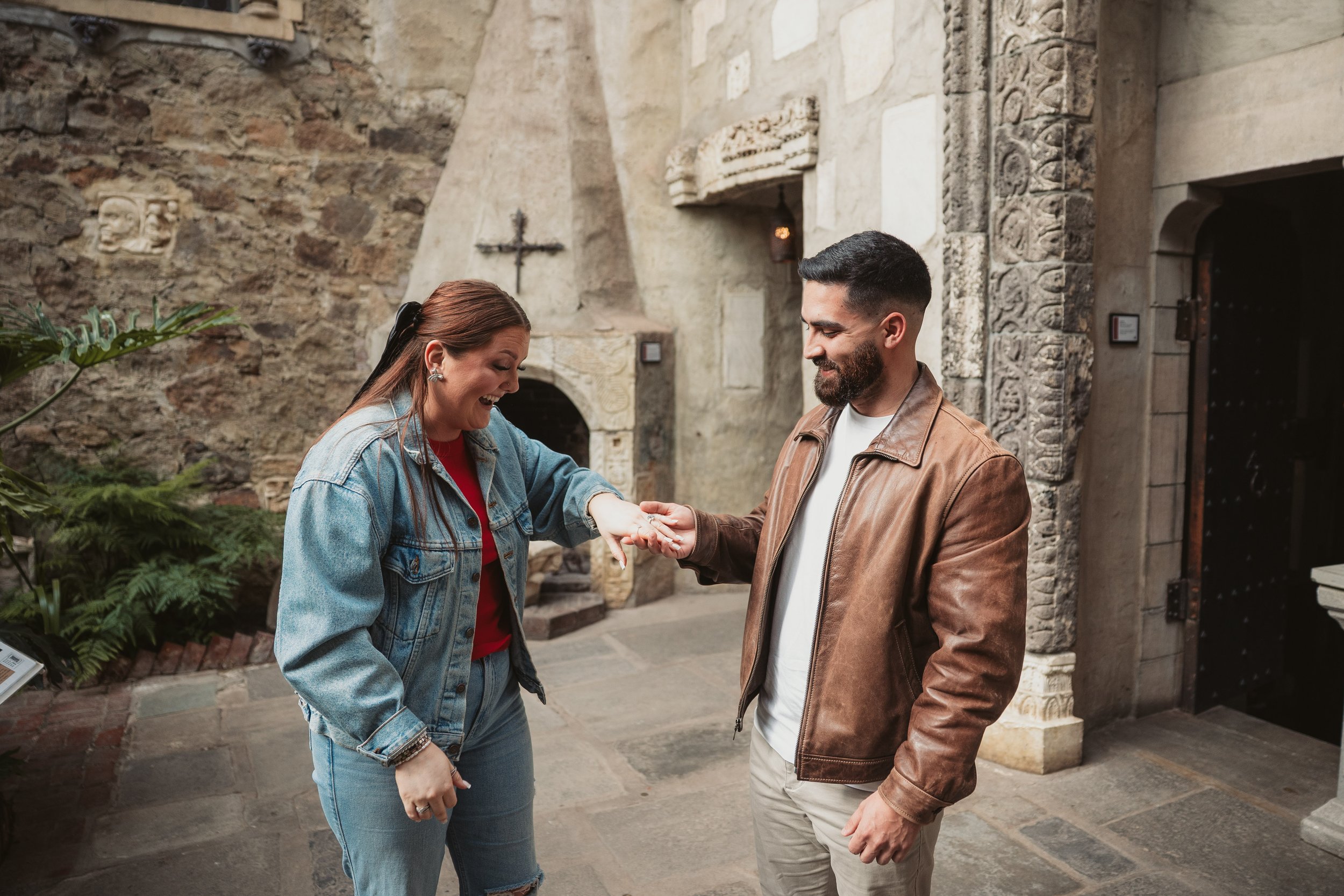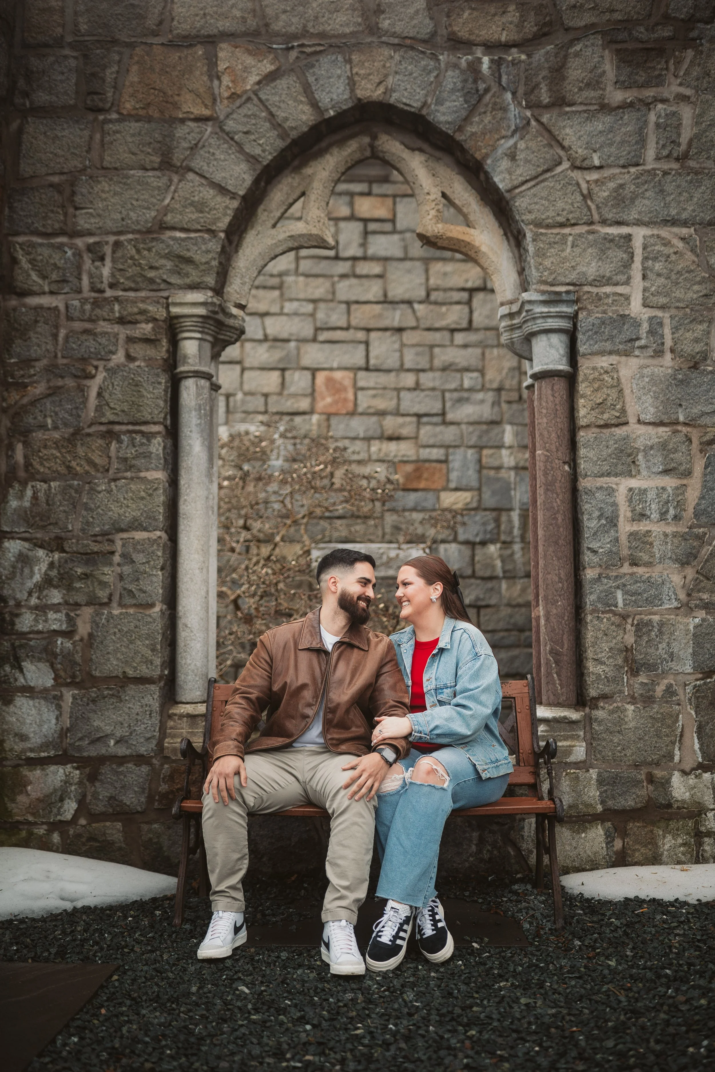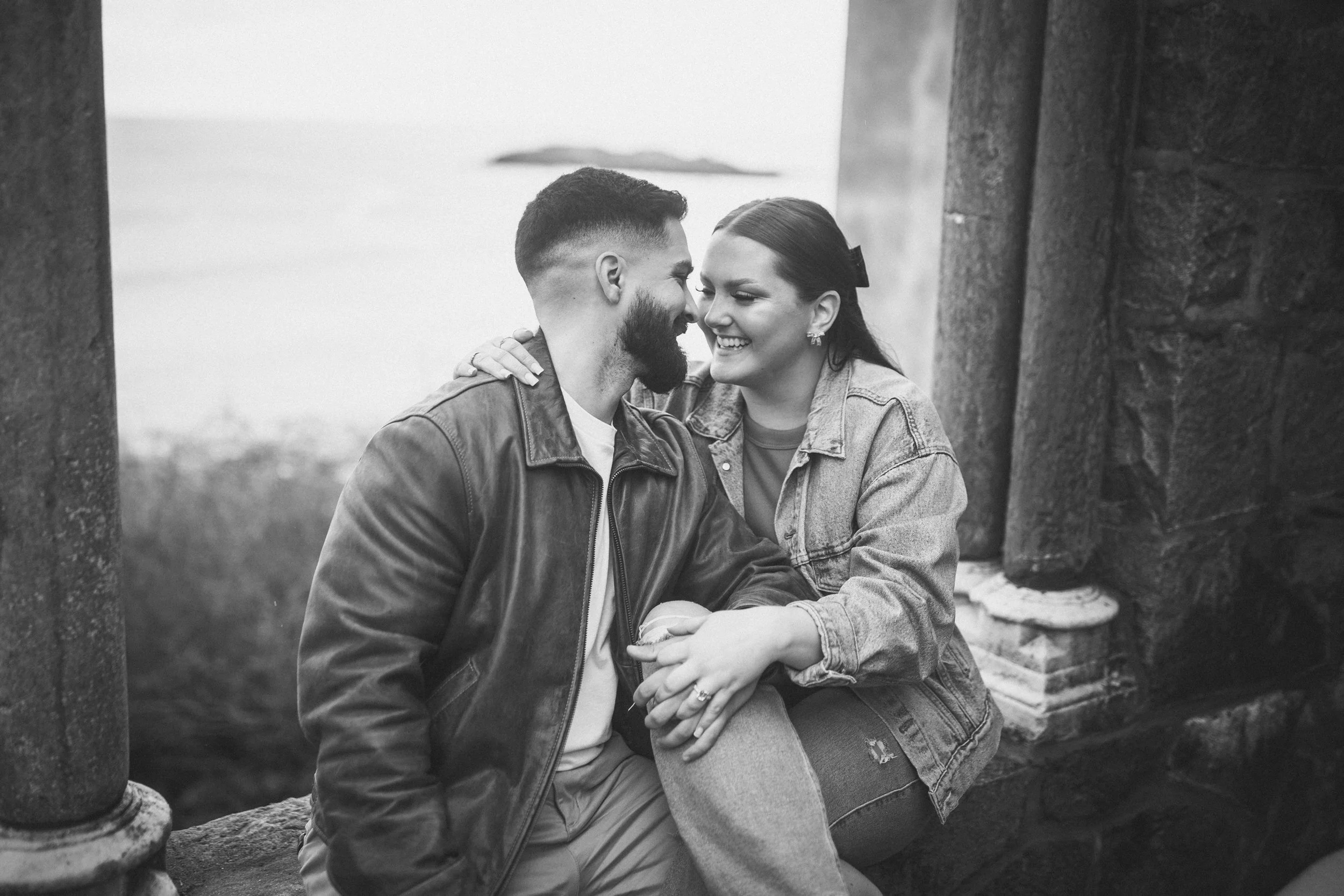 After their proposal, I took the couple around Hammond Castle for a relaxed portrait session, weaving through some of its most iconic spaces. From the stone arches overlooking the coastline to the historic drawbridge, the dramatic Great Hall, and the intimate circular library, each setting added its own sense of romance and timeless character. The experience felt natural and unhurried, allowing them to savor the moment while I captured their genuine connection within the castle’s storybook setting.