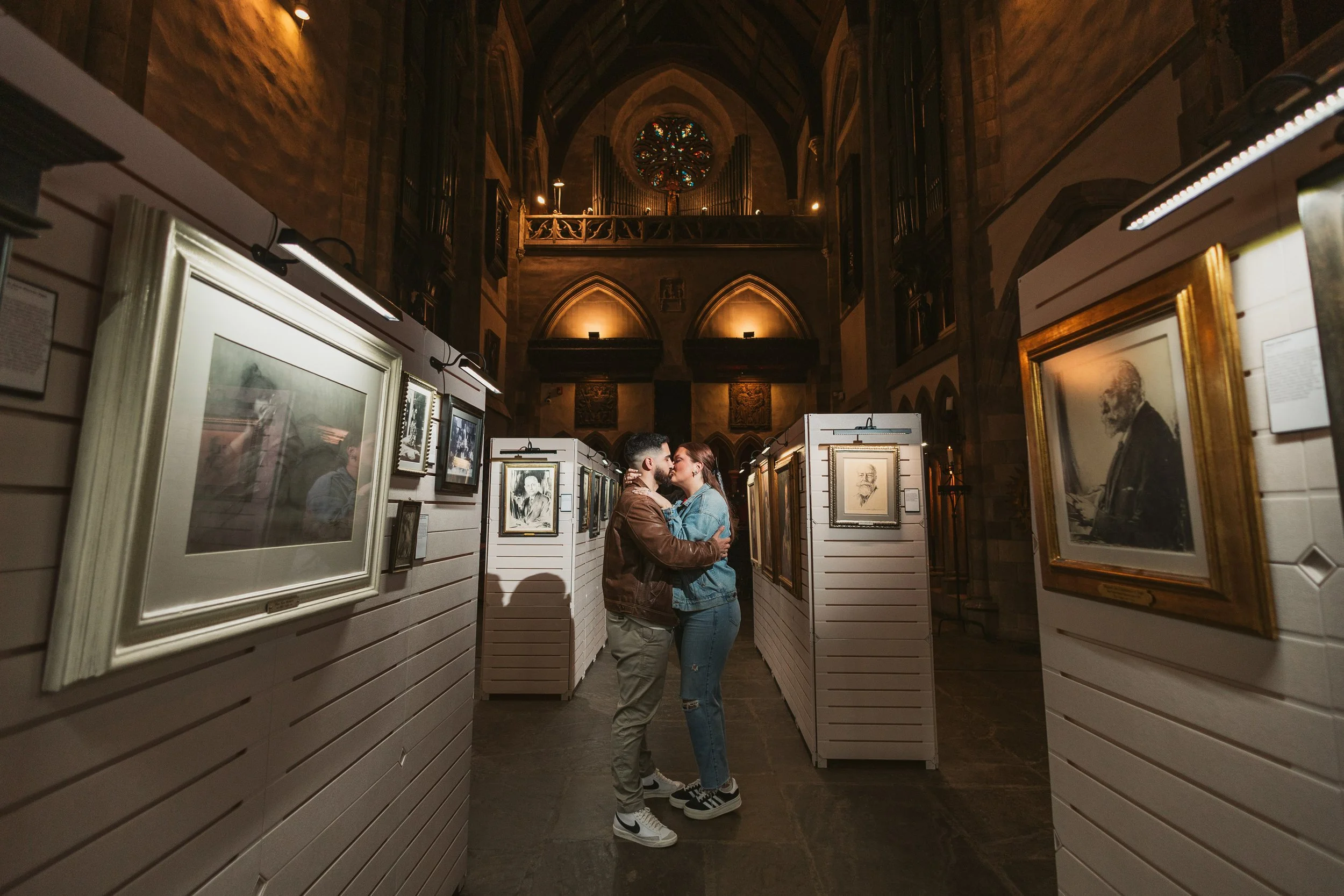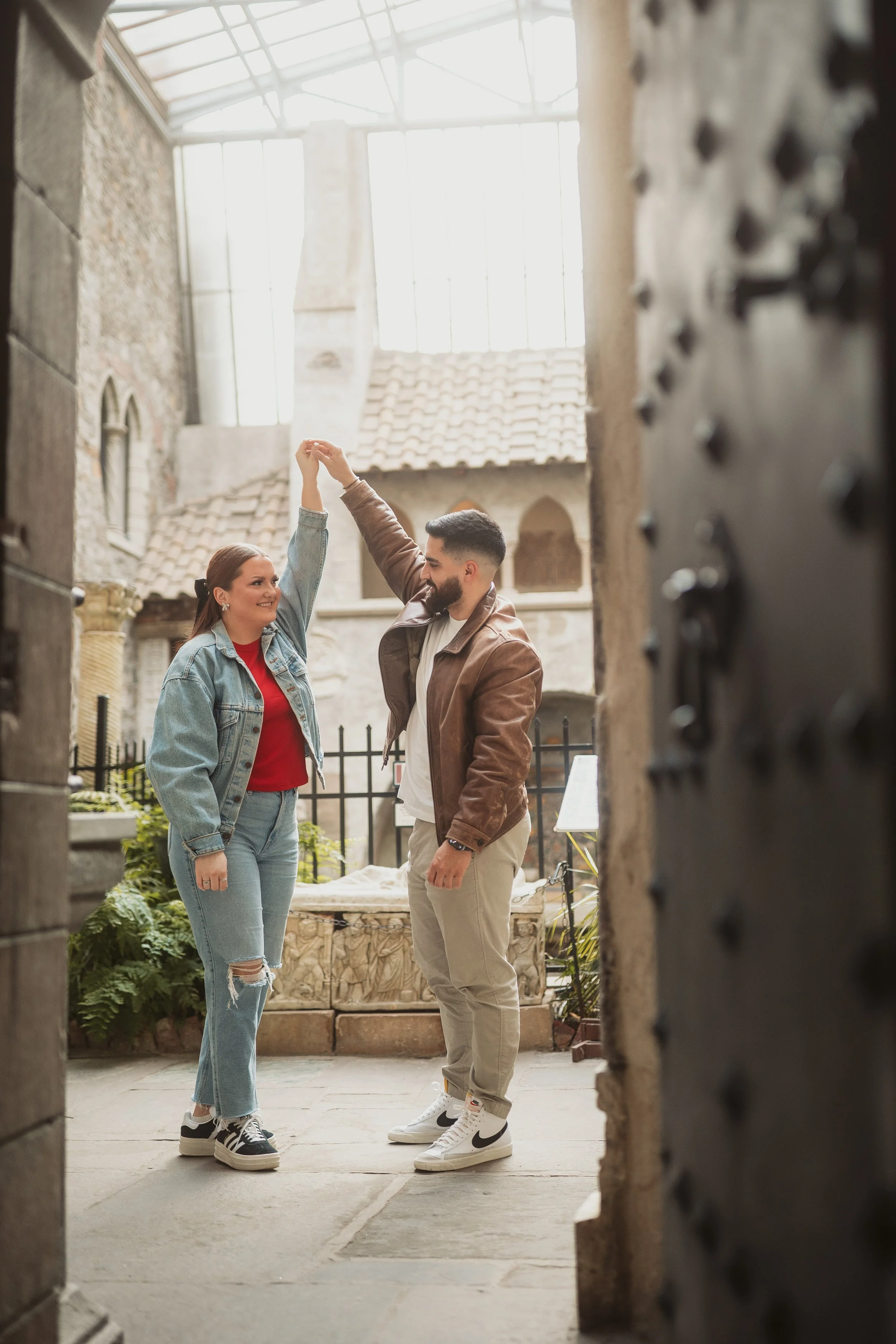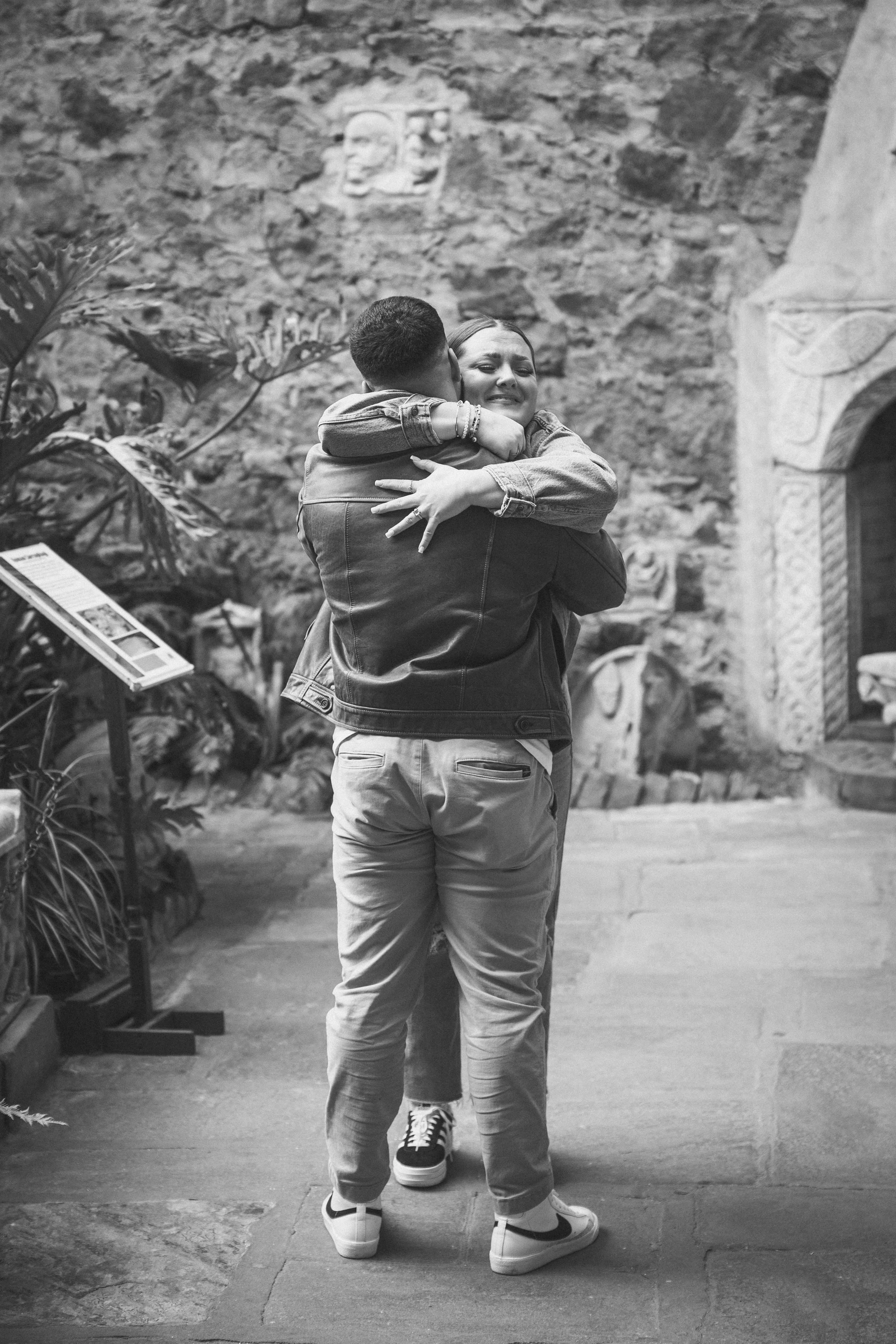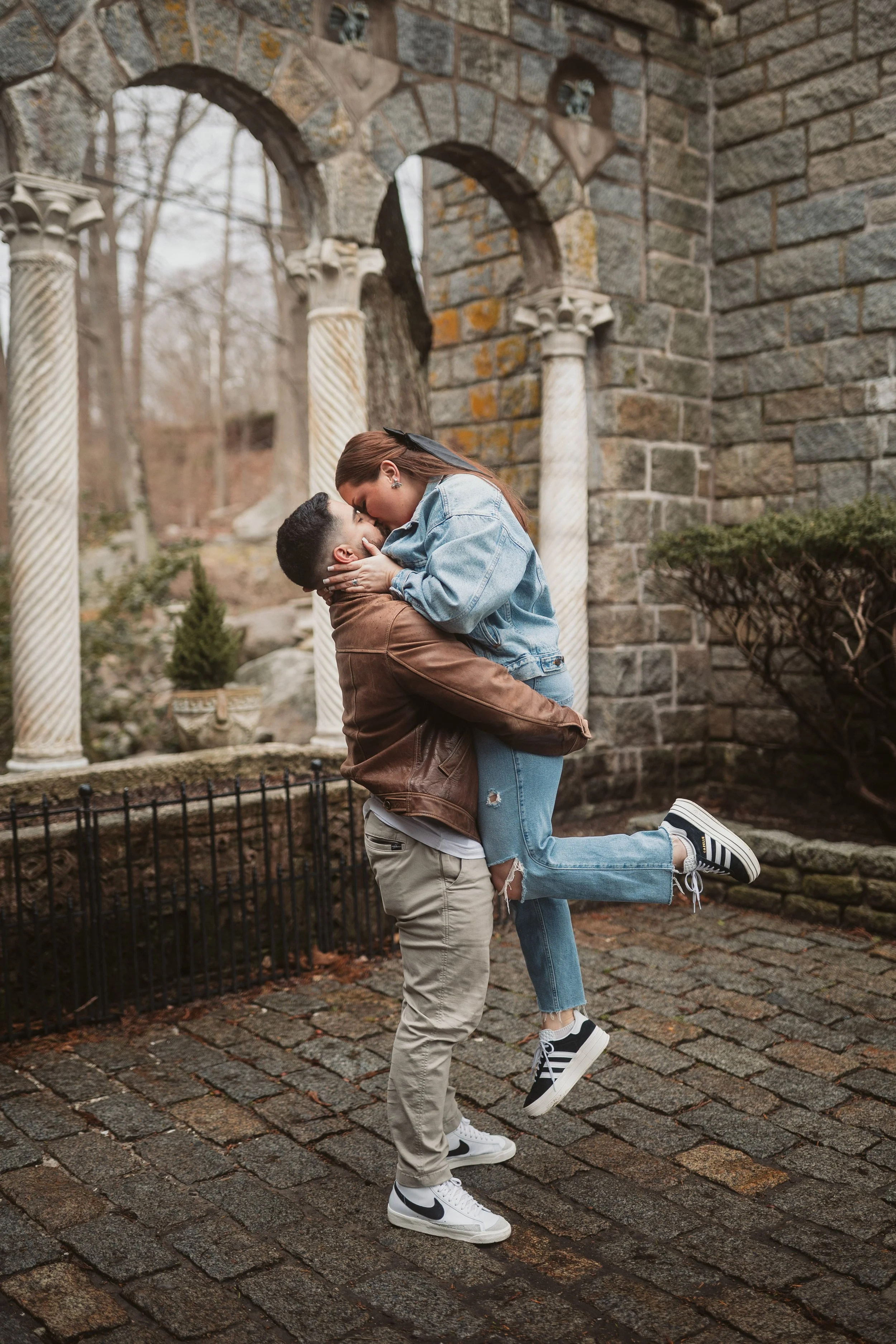After their proposal, I took the couple around Hammond Castle for a relaxed portrait session, weaving through some of its most iconic spaces. From the stone arches overlooking the coastline to the historic drawbridge, the dramatic Great Hall, and the intimate circular library, each setting added its own sense of romance and timeless character. The experience felt natural and unhurried, allowing them to savor the moment while I captured their genuine connection within the castle’s storybook setting.