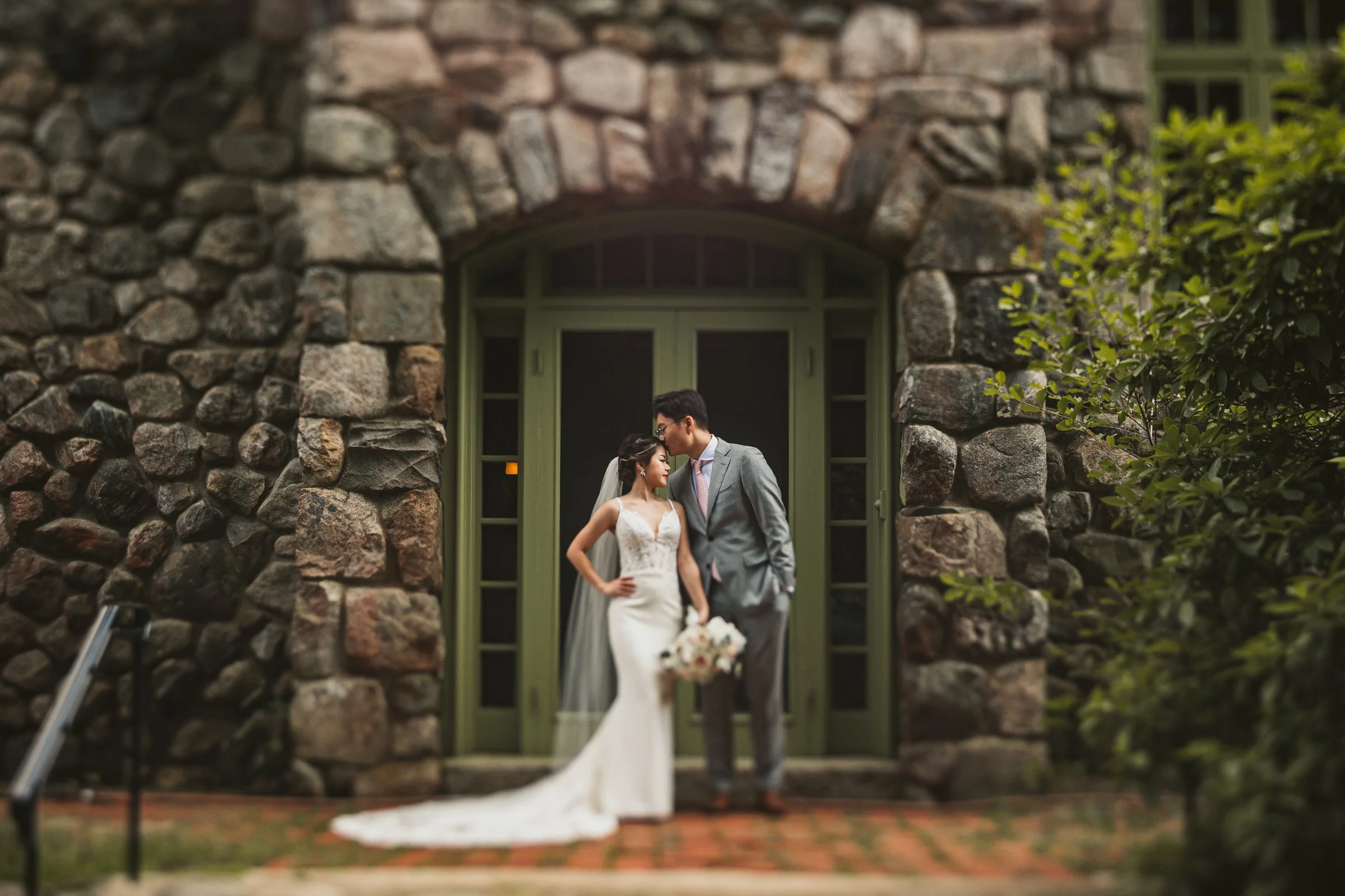 The fieldstone architecture of Willowdale Estate is instantly recognizable and provides a timeless backdrop for portraits. The textured stone walls, green window frames, and historic character create images that feel classic and elegant.