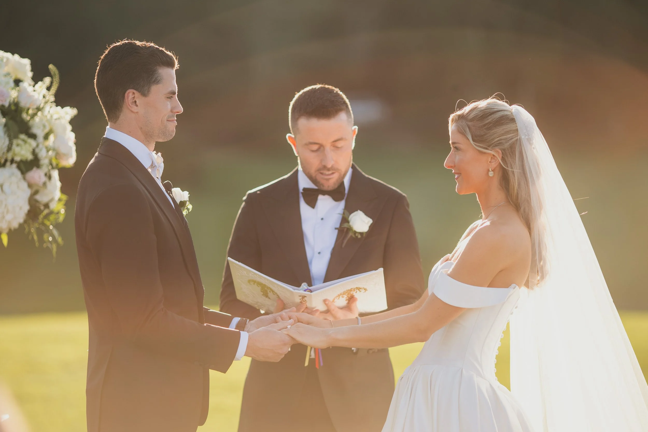 Their ceremony took place outdoors on the Sunset Terrace, and the timing could not have been more perfect. With the golden sun low in the sky and their closest people gathered around, Kayla & Nolan said their vows and walked back up the aisle to cheers, applause, and the brightest smiles from everyone there.