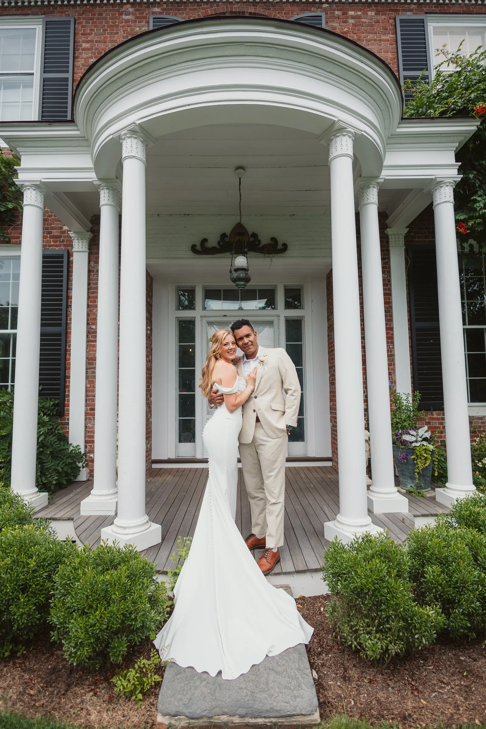 From there, we moved to the front of the mansion, where the stately columns and classic architecture added a timeless feel to their portraits. The soft light highlighted their connection in a way that felt effortless and refined.