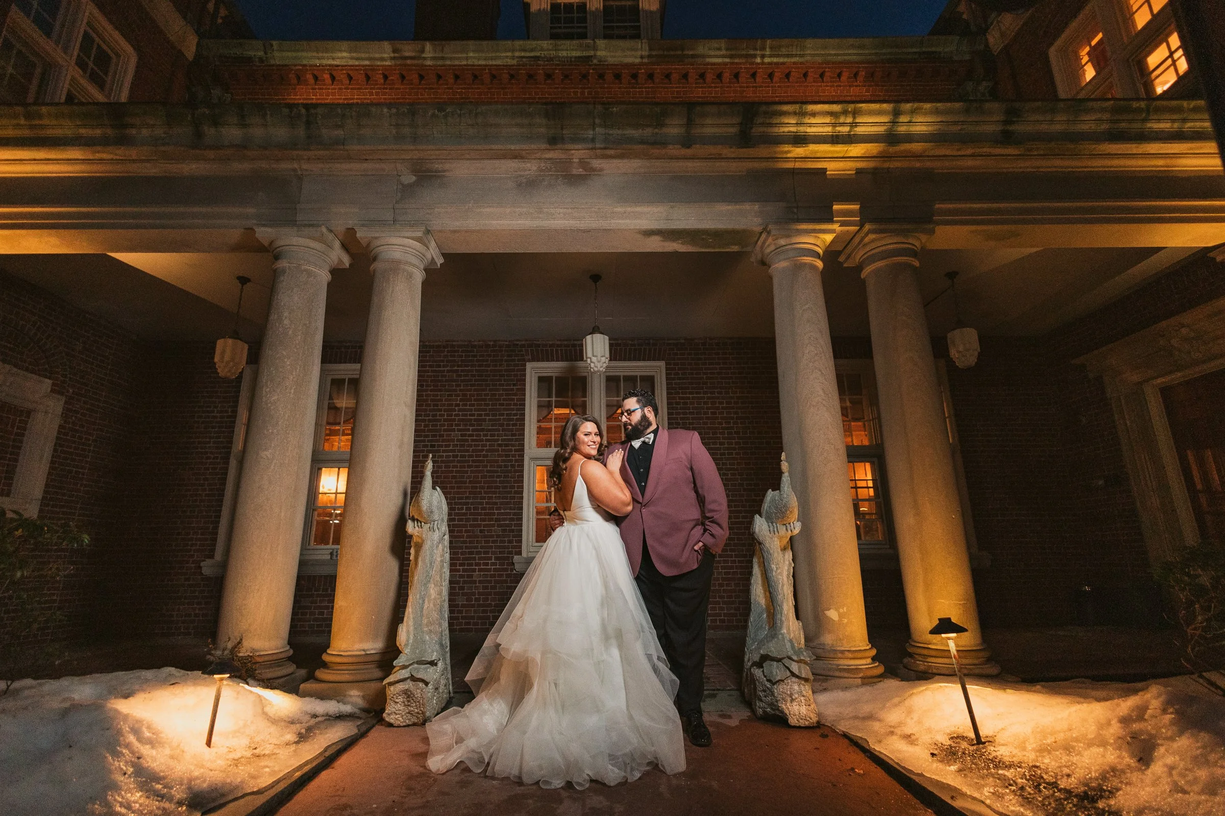One of the highlights of the property is how versatile it is for a wedding day. Outdoor ceremonies can take place overlooking the rolling estate grounds, while the historic mansion provides an elegant indoor space for receptions. The sweeping lawn, stone staircase, and classic architecture also create stunning portrait opportunities throughout the property, especially during golden hour when the light falls beautifully across the hilltop.