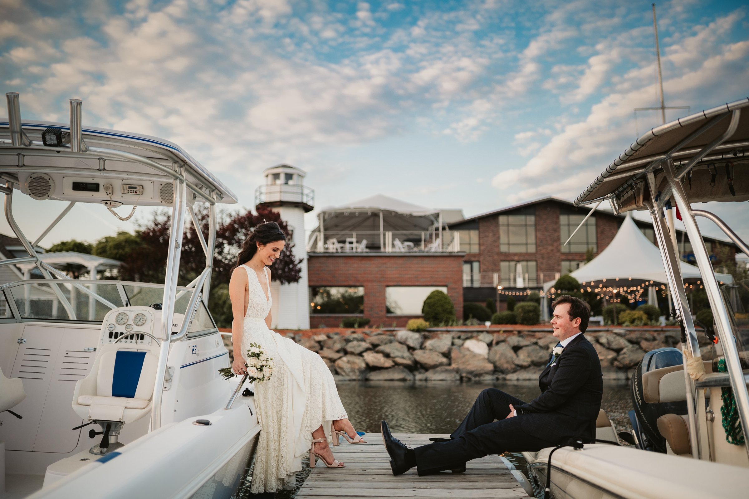 Couples appreciate the venue’s ability to host larger celebrations while still maintaining a scenic coastal atmosphere. The nearby docks and harbor front areas also provide beautiful portrait opportunities, especially as the sun begins to set over the water.